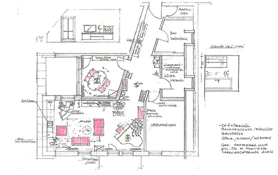 Konzept mit vorhandenen und neuen Möbeln als Optimierung. Erhaltung:
