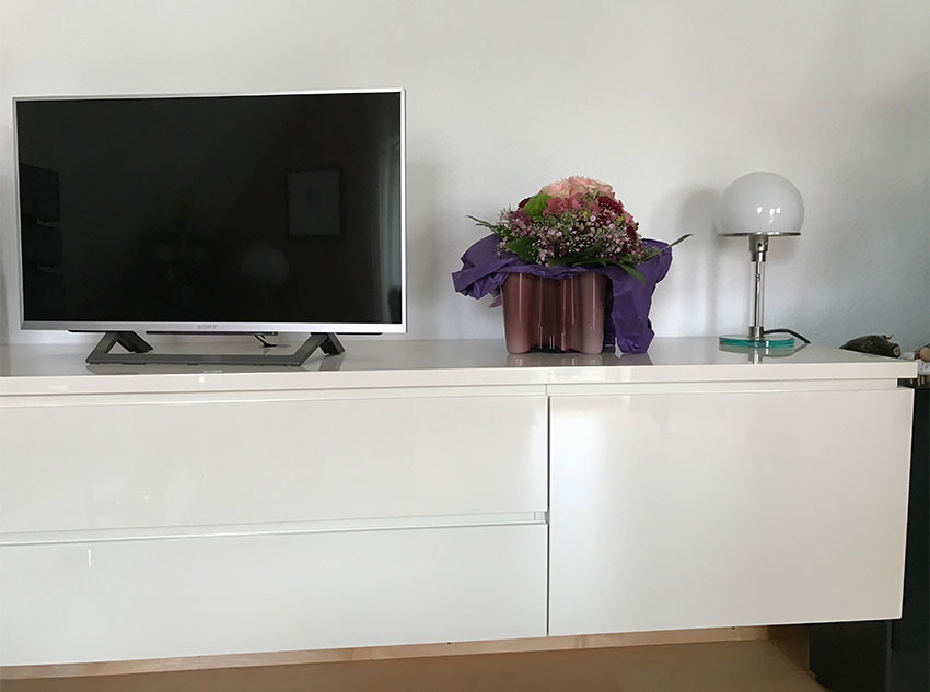 Ergänzend neues Sideboard für die HIFI-Anlage und das TV-Gerät, sowie